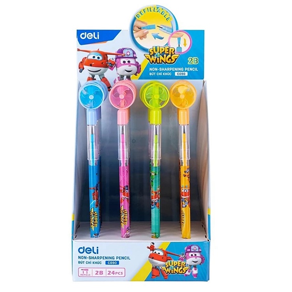Bút chì khúc 2B DELI CC090 kèm quạt mini