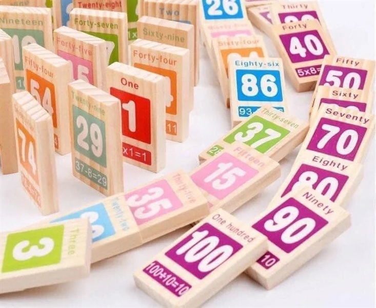 Đồ chơi bằng gỗ: Bộ trò chơi DOMINO số đếm 1-100 gỗ 2 mặt