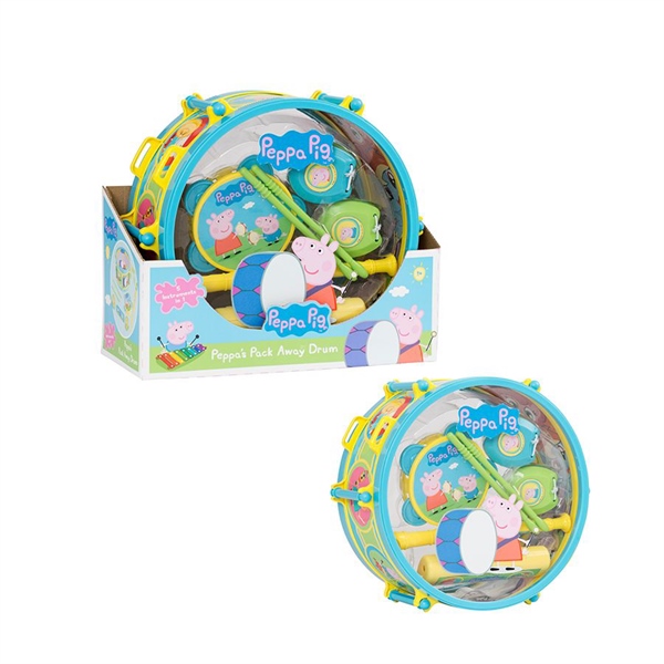 Bộ trống âm nhạc heo Peppa [Bộ trống gồm một máy ghi âm,trống lục lạc, bộ gõ castanet, dùi trống và một cây kèn harmonica]