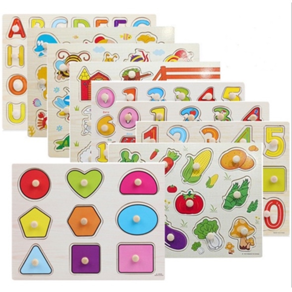 Montessori gỗ: Bảng gỗ có núm nhiều chủ đề học