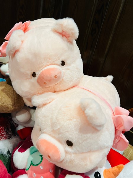Thú Nhồi Bông - Lợn hồng đeo nơ nằm [size ~40-50]