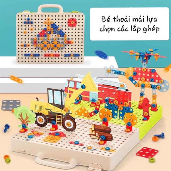 Vali kỹ thuật lắp ráp ốc vít 3D có máy vít chạy pin