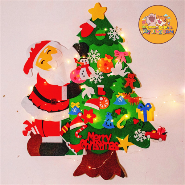 Đồ chơi làm và trang trí cây thông Noel bằng vải dạ treo tường - Set Cây thông Noel và Ông già Noel [Tặng kèm bộ đèn nhấp nháy treo cây]