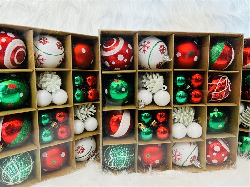 Set châu trang trí giáng sinh Noel - Set 16 ô mix nhiều mẫu châu đỏ xanh trắng