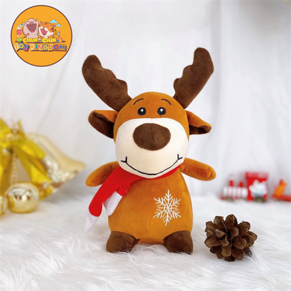 Thú nhồi bông Noel - Tuần lộc ngồi đeo khăn: size 30