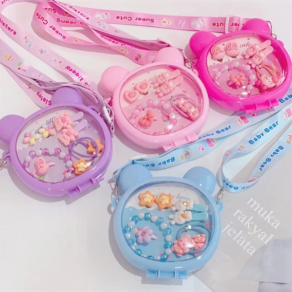 Hộp phụ kiện làm đẹp bé gái_Đầu Gấu_Hồng nhạt