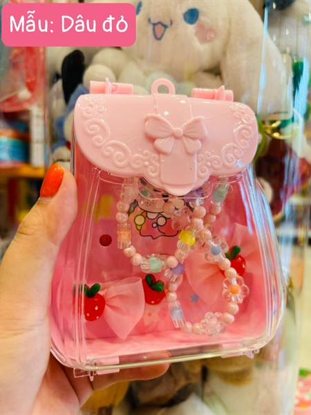Hộp phụ kiện làm đẹp bé gái_Hình Balo_Dâu đỏ