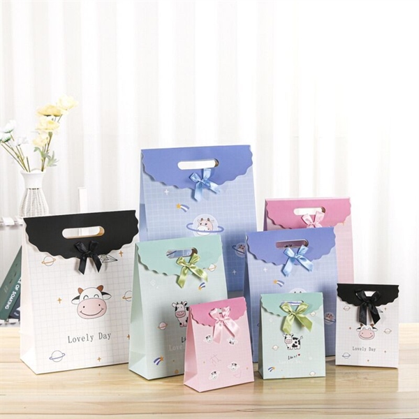 Túi giấy đựng quà giấy đẹp có nắp kèm nơ nhiều hoạ tiết đẹp size 16,5x21x8cm