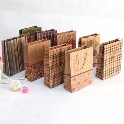 Túi giấy đựng quà giấy Kraft Dọc quai dù in họa tiết vintage size 23x30x8cm