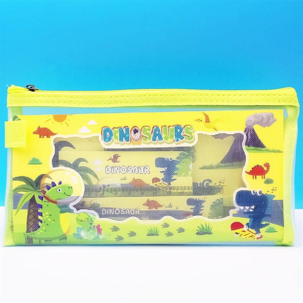 SET TÚI LƯỚI 7 ĐỒ DÙNG HỌC TẬP_ DINOSAURS (1 túi bút lưới, 2 bút chì, 1 thước kẻ, 1 gọt chì, 1 tẩy, 1 sổ tay)