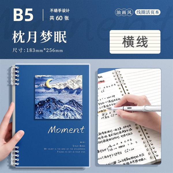 Sổ còng kẻ caro Moment B5 120 trang - Xanh lam