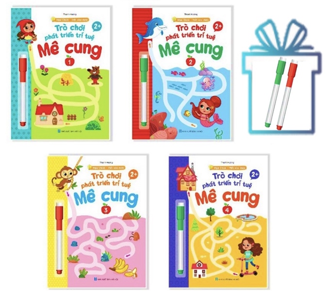 COMBO 4 quyển Trò chơi phát triển trí tuệ MÊ CUNG (Quà tặng: 2 bút có đầu xoá)
